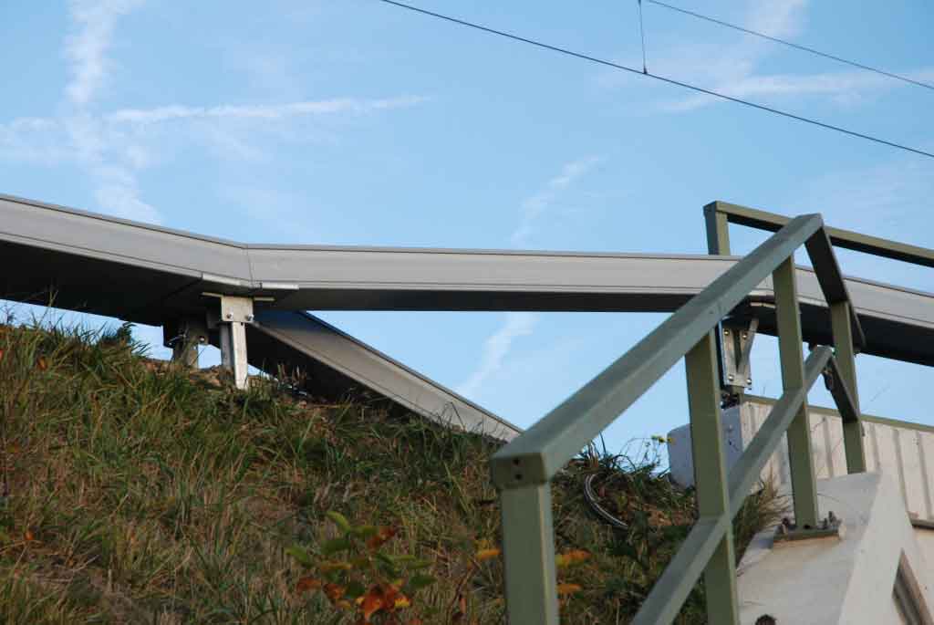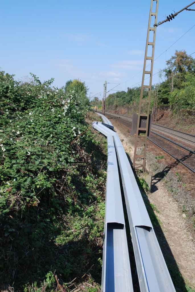 Whether on rail routes, at airports, or in the field of energy supply, the availability of modern systems largely depends on reliable power supply and transmission of information. In this context it is important that a multitude of sensitive cables are efficiently protected against outside influences. The elevated GRP cable duct system offers reliable protection against foreign influences and was designed for difficult terrains. The elevated GRP cable duct system ARCOSYSTEM® Sizes 1 + 2 was designed for topographically diffi cult terrains along the rails. Even in such conditions the laying of cables does not present a problem. ARCOSYSTEM® Size 1 has a usable inner cross section of 100 x 150 mm and ARCOSYSTEM® Size 2 250 x 150 mm. The elevated cable duct ARCOSYSTEM® Sizes 1 + 2 allows a maximum distance of 6 metres between the sigma posts. Therefore a structural analysis was done and rechecked by an inspecting structural engineer. The GRP cable duct is extremely light, yet solid due to the doublewalled construction of the base. The lid snaps in to the base and can only be opened with an accuratetool.